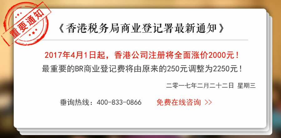 近日,香港政府有關(guān)部門(mén)反饋,香港公司注冊(cè)出現(xiàn)要排隊(duì)遞交資料,注冊(cè)量暴增的跡象。究其原因,除了每年的3月份是香港公司注冊(cè)旺季以外,最重要的原因就是4月1日起,香港政府將香港公司注冊(cè)中最重要的BR商業(yè)登記費(fèi)由2016年的豁免重新調(diào)整到往年水平2250元!當(dāng)市場(chǎng)需求遇上政府調(diào)價(jià),注冊(cè)量暴增就不足為奇了!