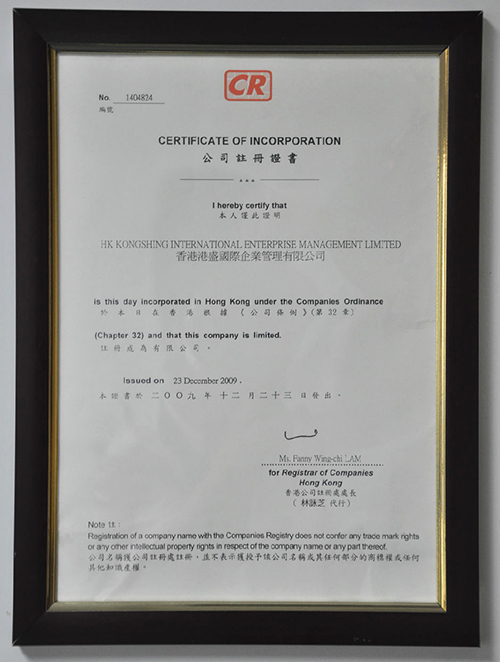 港盛香港公司證書