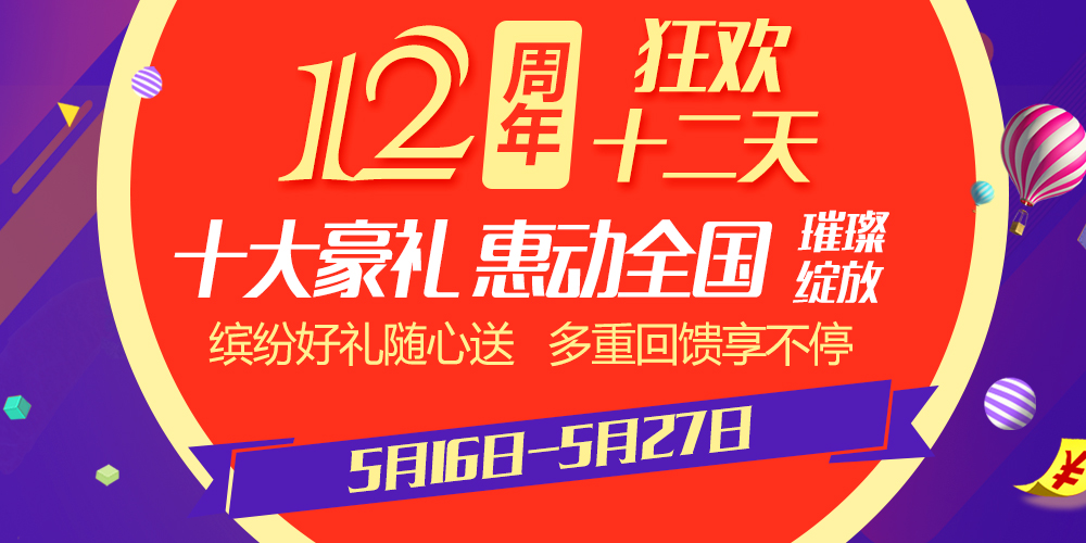 狂歡12天!十大超級福利!港盛12周年慶玩大了!